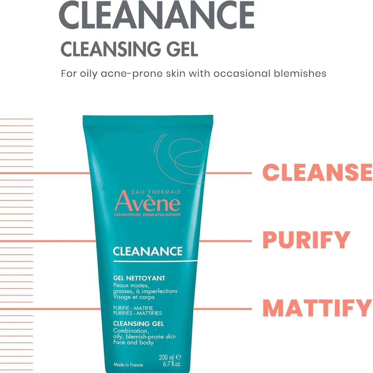 Avene Cleanance Cleansing Gel is a gentle, soap-free formula designed to cleanse and purify oily and acne-prone skin. Infused with Avene Thermal Spring Water, this gel removes impurities