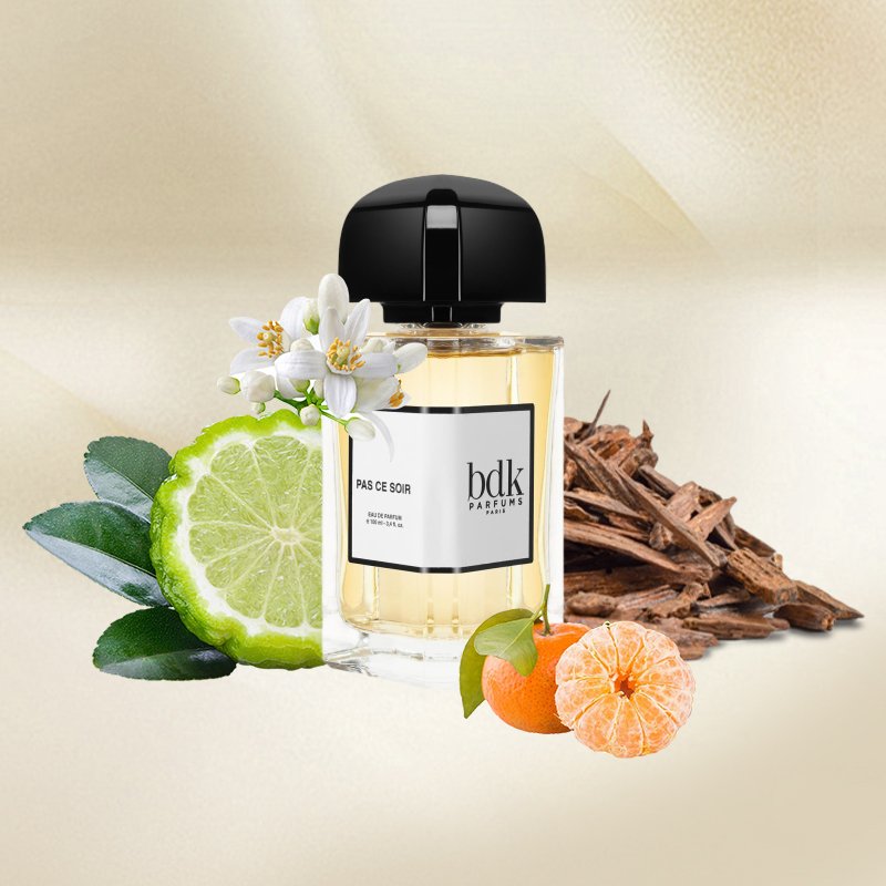 Pas Ce Soir opens with a vibrant and zesty burst of ginger, mandarin orange, teasing the senses with a playful energy. The heart unfolds a delicate and romantic bouquet of quince and orange blossom, their sweetness interwoven with the subtle spice of the top notes. Finally, the fragrance settles into a warm and comforting base of Cashmeran, a velvety musk that lends an addictive, sensual quality to the overall composition. This sophisticated layering creates a fragrance that is both bright and alluring, fresh and deeply captivating.
