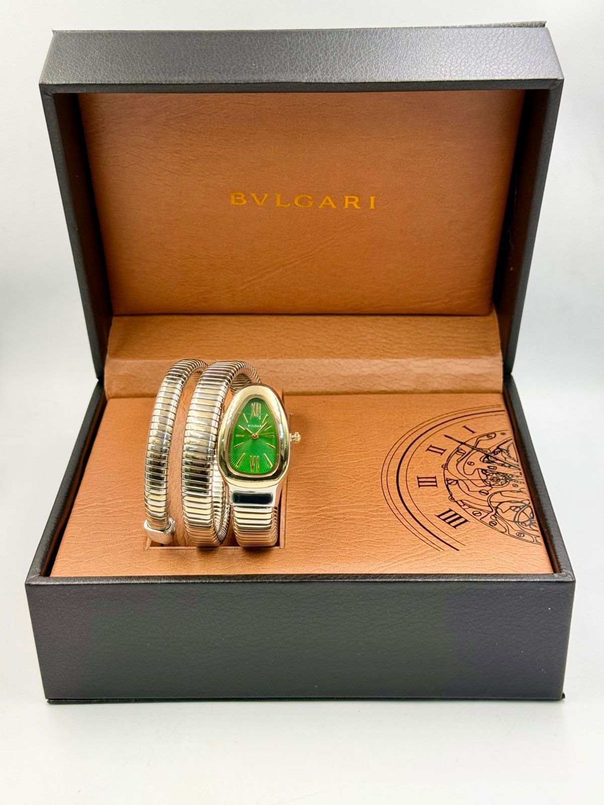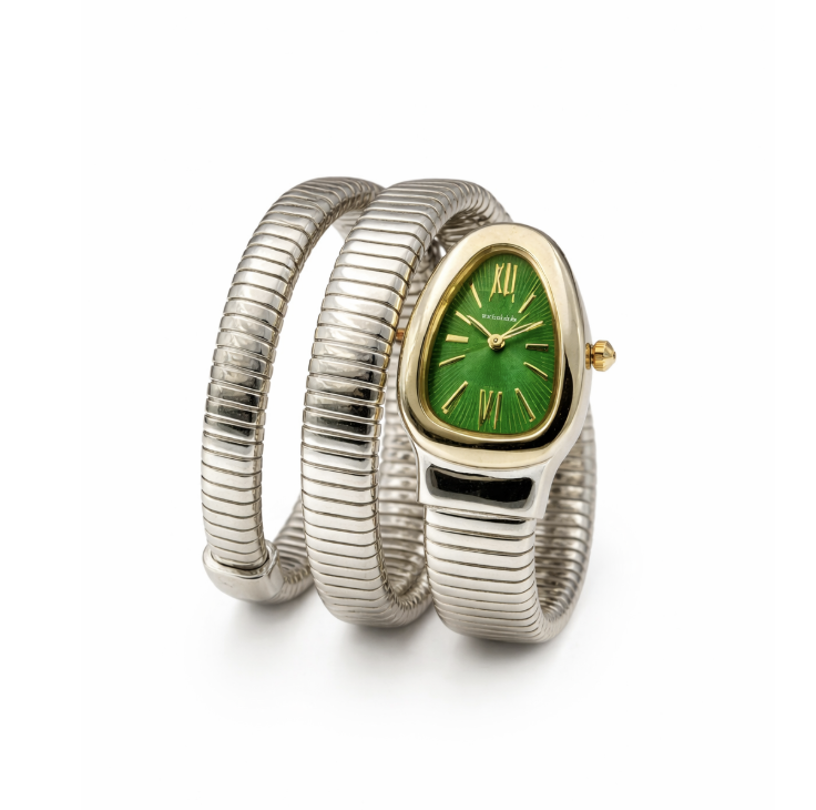 Bvlgari Snake Watch, Green Watch Face, Gold