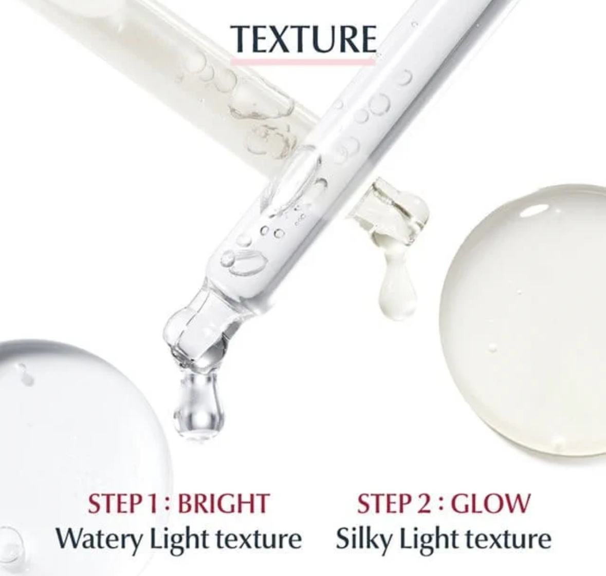 Two step ampoules to effectively help reduce dark spots & dullness for brighter & dewy glowing skin