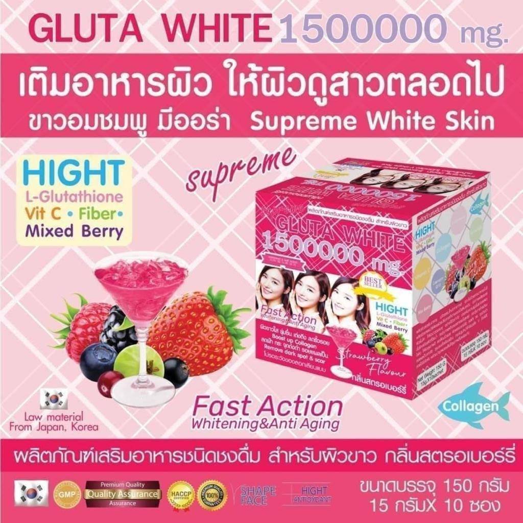 Supreme GLUTA WHITE Powder 1500000mg Dietary Supplements .“Whitening & Anti Aging” Net WT:1 sachet 15 grams/1 box contains 10 sachets