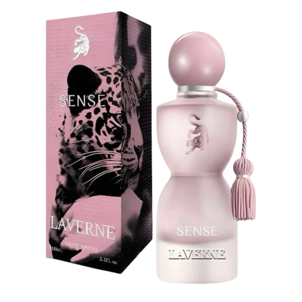 Sense by Laverne is a fragrance inspired by a flower that swayed like a ballerina, capturing the essence of femininity. Created by Dalia Izem in collaboration with Georgina Rodriguez, this perfume embodies a journey of planning and creativity. It features a composition that opens with blackcurrant and mandarin, transitions to a heart of jasmine, iris, cashmere, and orange blossom, and settles into a base of musk.