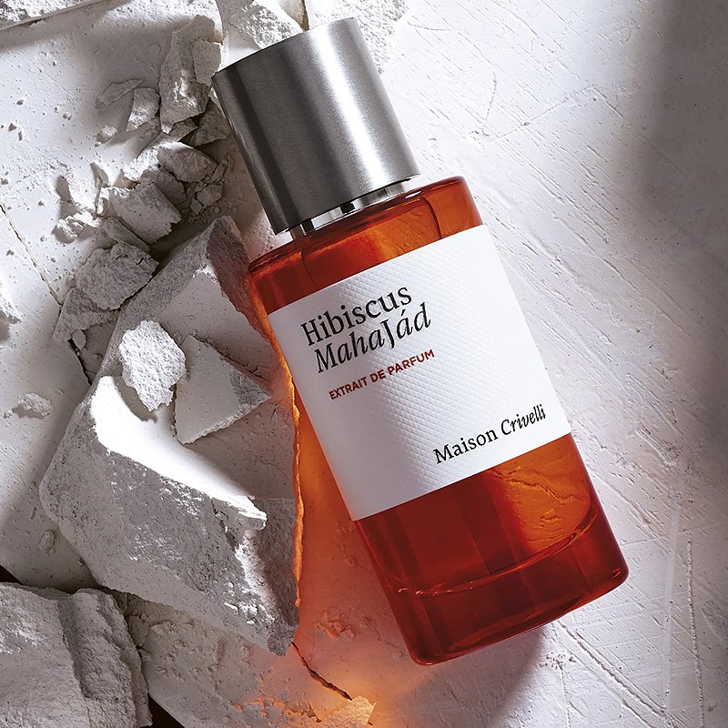Hibiscus Mahajád Eau de Parfum (EDP) by Maison Crivelli opens with hibiscus and cassis. The heart unveils rose, leather, and spices. The fragrance settles into vanilla, amber, musk, and cinnamon.