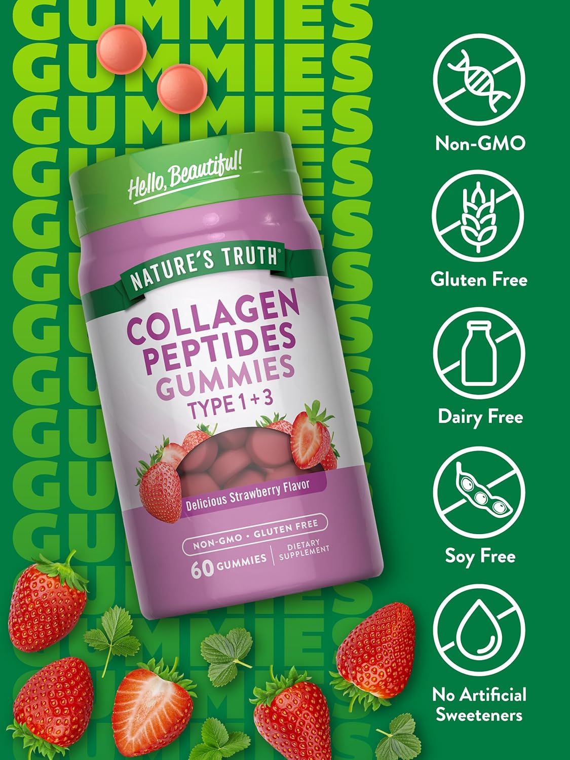 Nature’s Truth, Collagen Peptides Gummies, 60 Strawberry Gummies