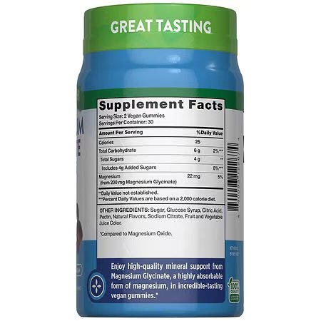 Magnesium Glycinate is a highly absorbable form of magnesium, an essential mineral the body needs but cannot produce on its own.* While magnesium can be obtained through certain foods like whole grains and leafy greens, a high-quality supplement can help satisfy your daily requirement for this important mineral. Nature’s Truth Magnesium Glycinate gummies provide quality mineral support from a highly absorbable form of magnesium. These pectin-based vegan gummies