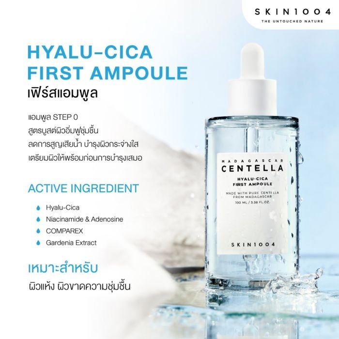 SKIN1004 Madagascar Centella Hyalu-Cica First Ampoule is a lightweight, watery ampoule designed to boost moisture instantly. Formulated with 5 types of hyaluronic acid, birch sap, and ivy, it deeply hydrates, soothes, and prepares the skin for the next steps in your skincare routine.